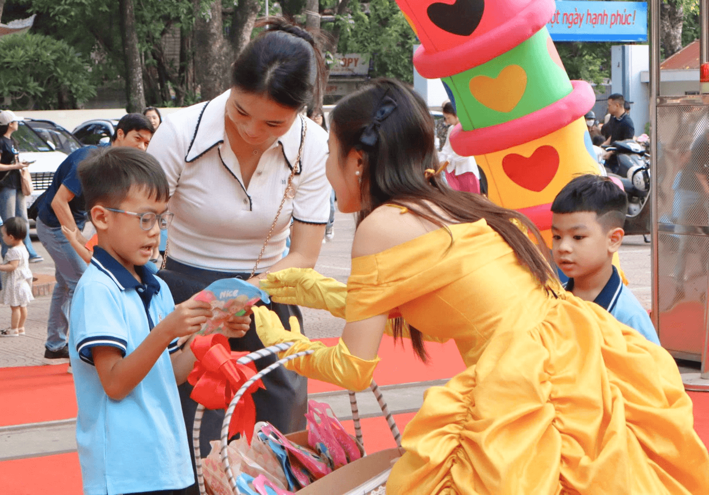 Phần giao lưu với học sinh là điểm nhấn đáng yêu. Câu đố vui vừa vang lên, nhiều cánh tay nhỏ xíu đã vẫy cao đầy háo hức. Những phần quà nhỏ xinh trao tay kèm nụ cười của thầy cô khiến các em thêm tự tin, vui thích và mạnh dạn thể hiện mình. Mỗi câu trả lời mang theo cả thế giới trong trẻo của tuổi thơ.