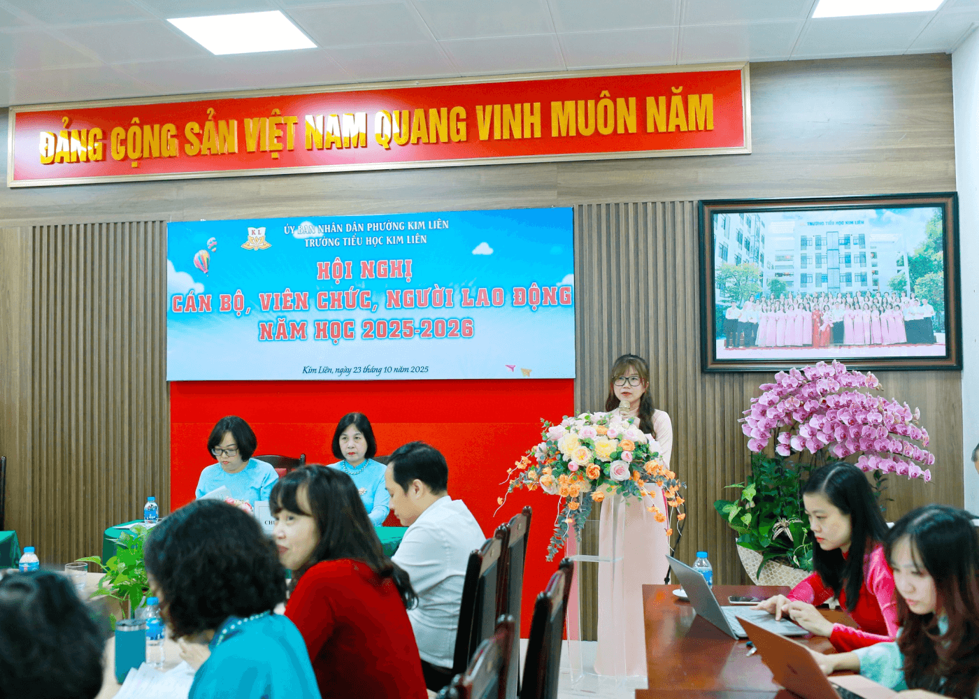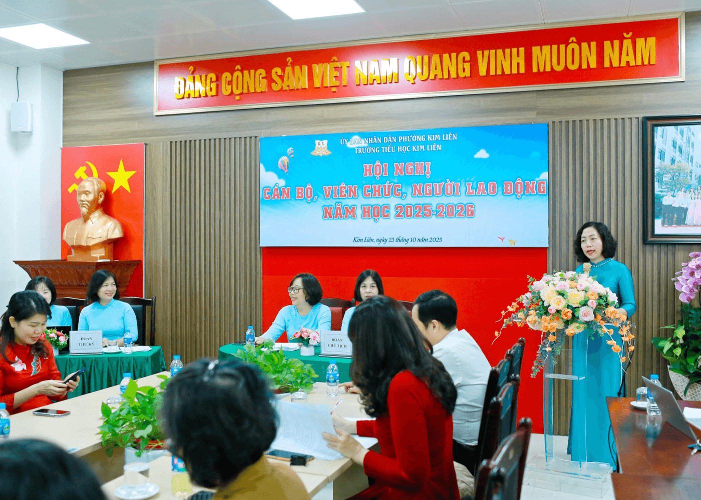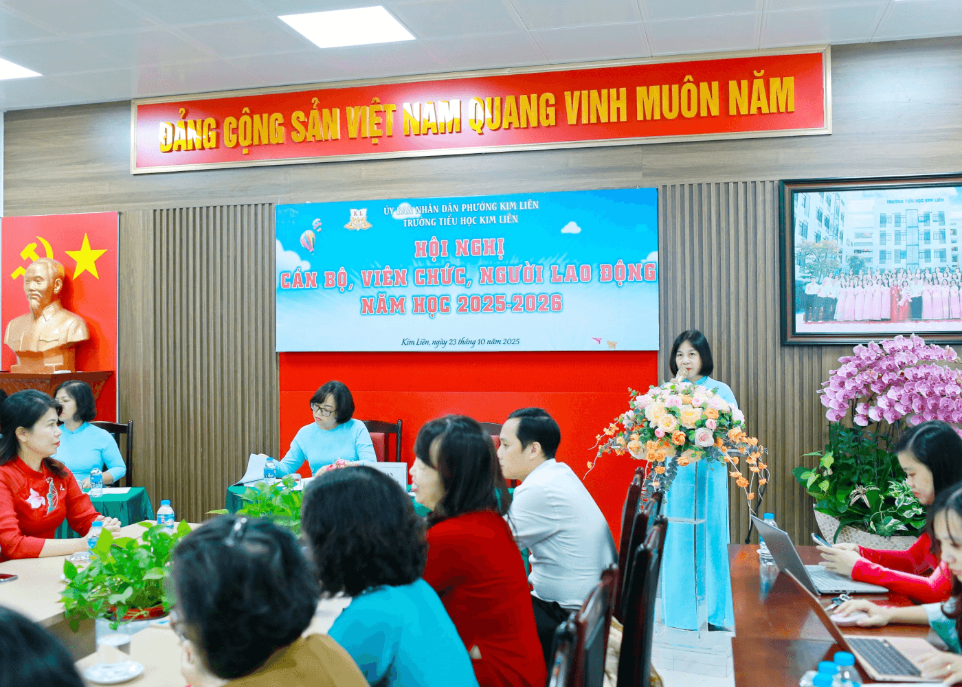 Sáng ngày 23/10/2025, trong không khí của những ngày thu Hà Nội dịu mát, trong xanh và tràn đầy niềm tin, Trường Tiểu học Kim Liên đã long trọng tổ chức Hội nghị Cán bộ, Viên chức, Người lao động năm học 2025-2026.