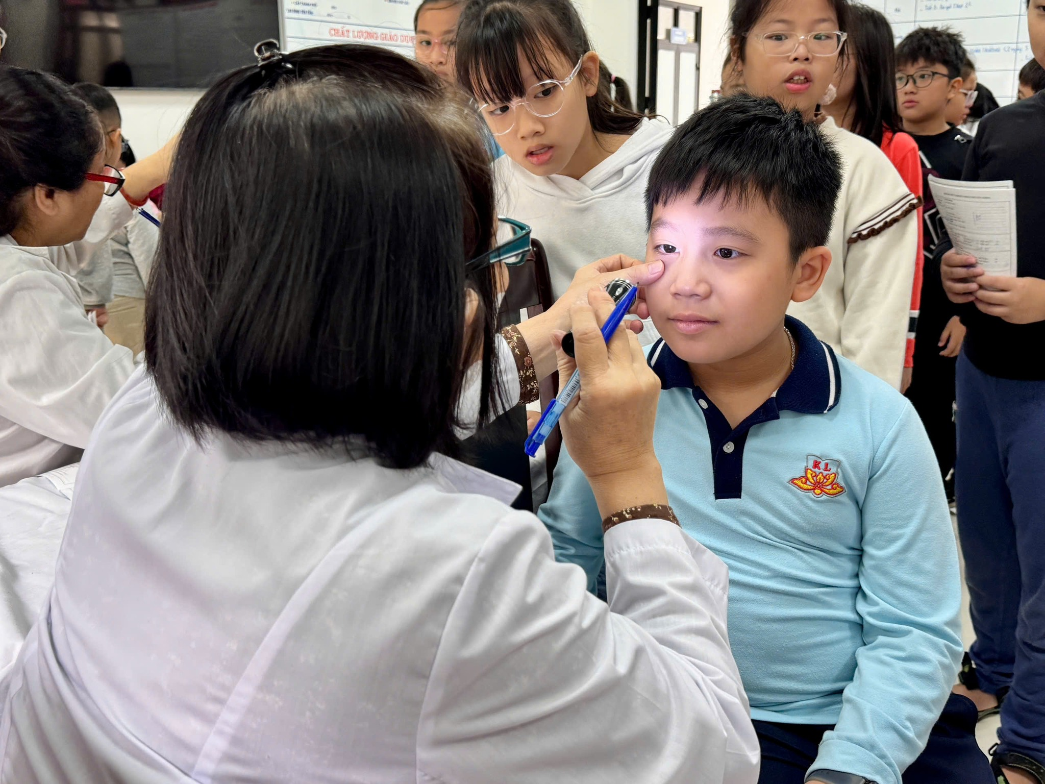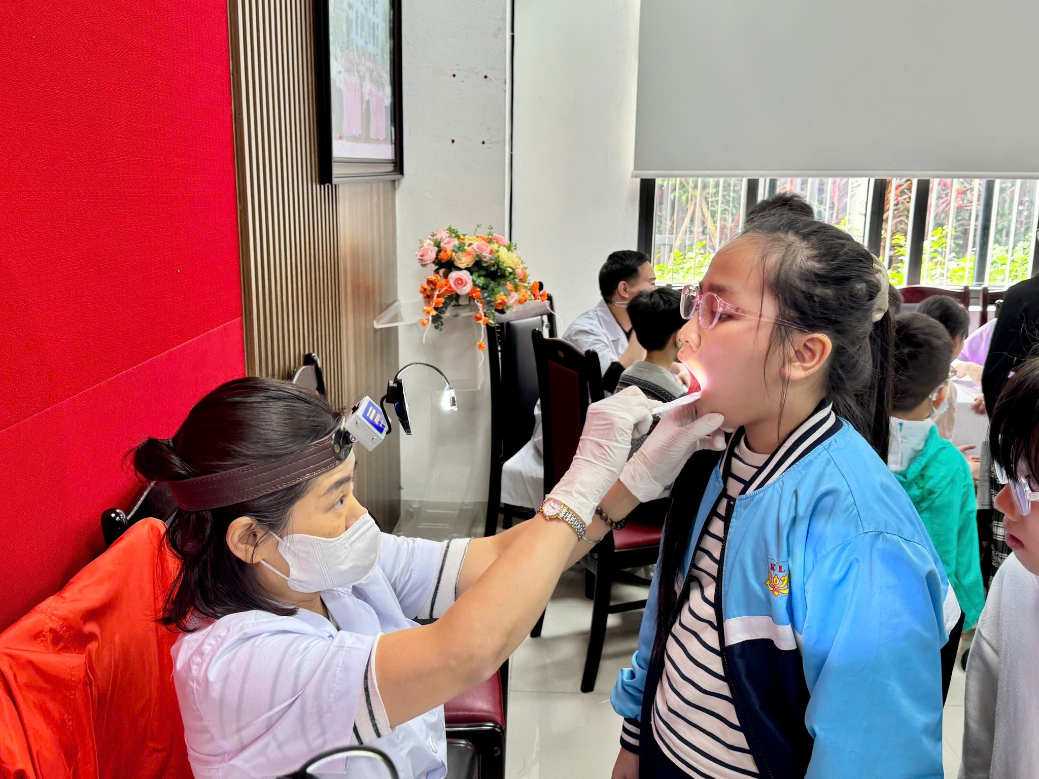 Các con học sinh Tiểu học Kim Liên đã được các bác sĩ chuyên khoa khám lâm sàng các bệnh về răng-hàm-mặt, tai-mũi-họng, đo thị lực, khám nội khoa, da liễu …