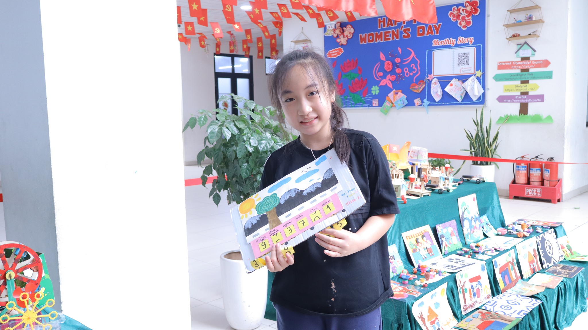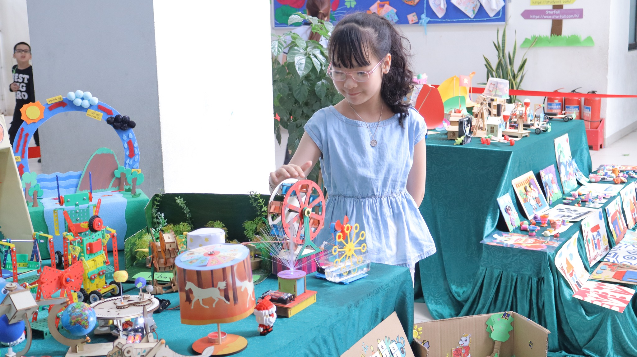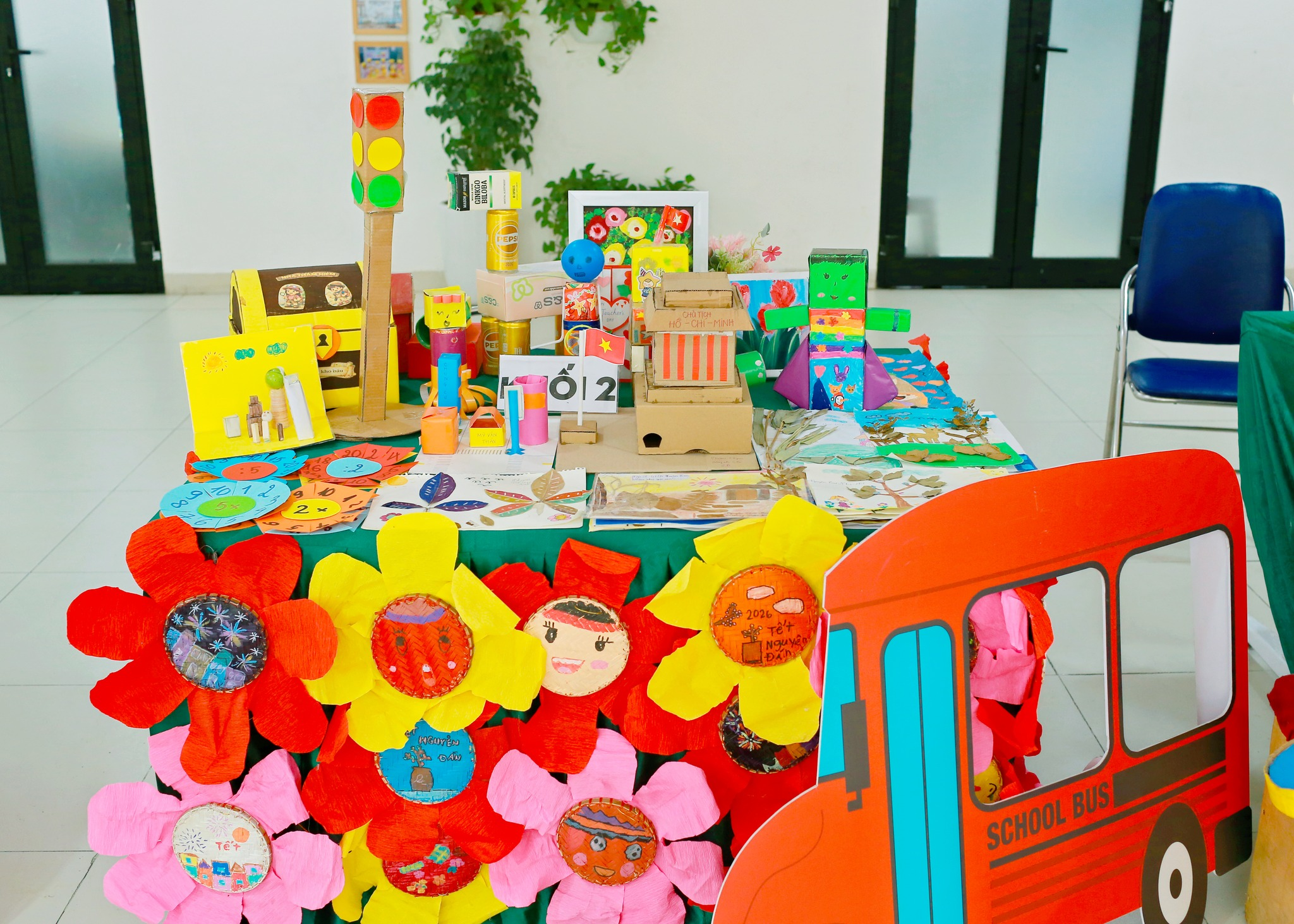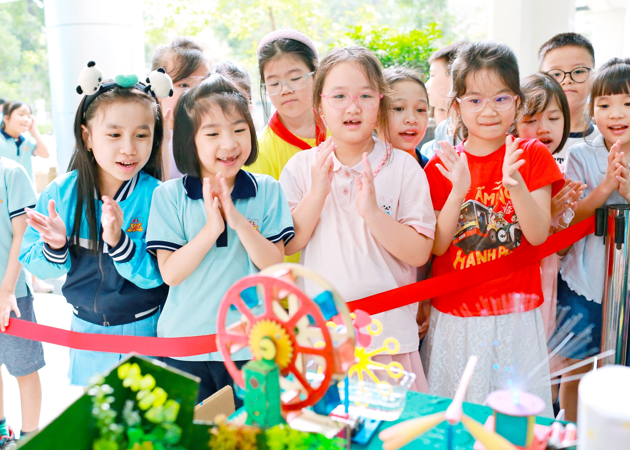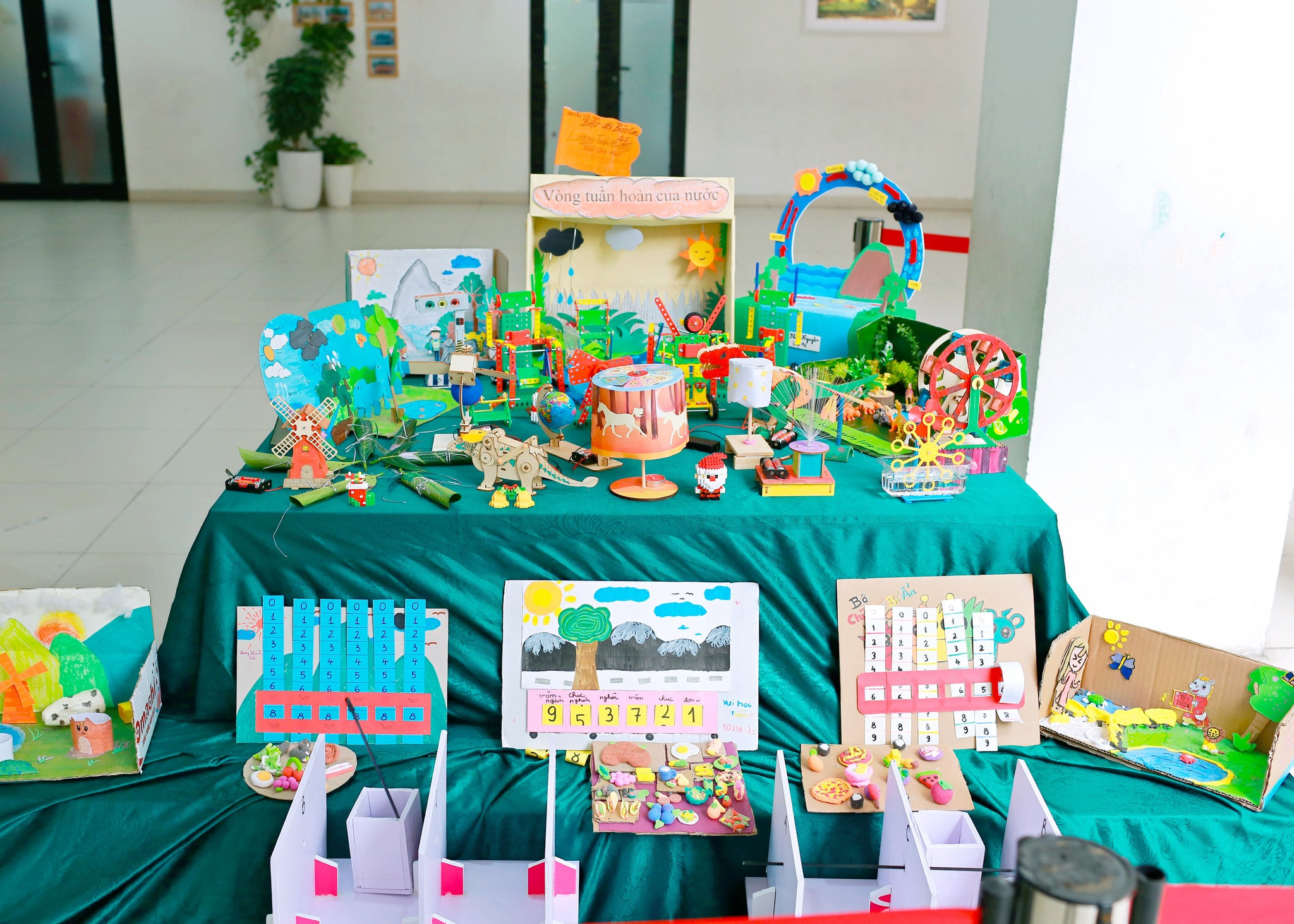 Các gian trưng bày sản phẩm STEM của từng khối lớp đã mở ra một không gian học tập sinh động, nơi kiến thức được “hiện thực hóa” bằng những mô hình sáng tạo, độc đáo và đầy tính ứng dụng.