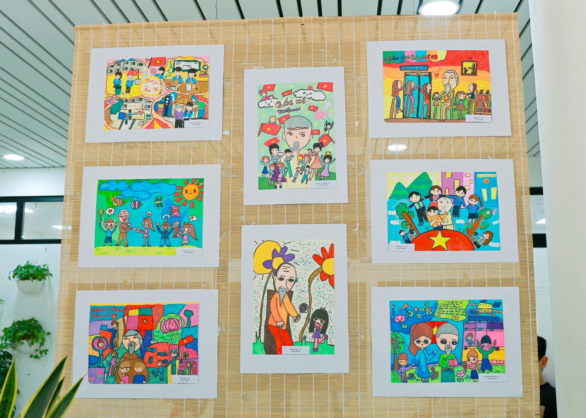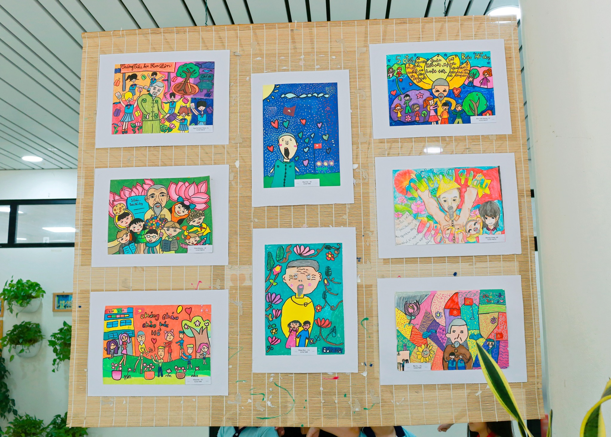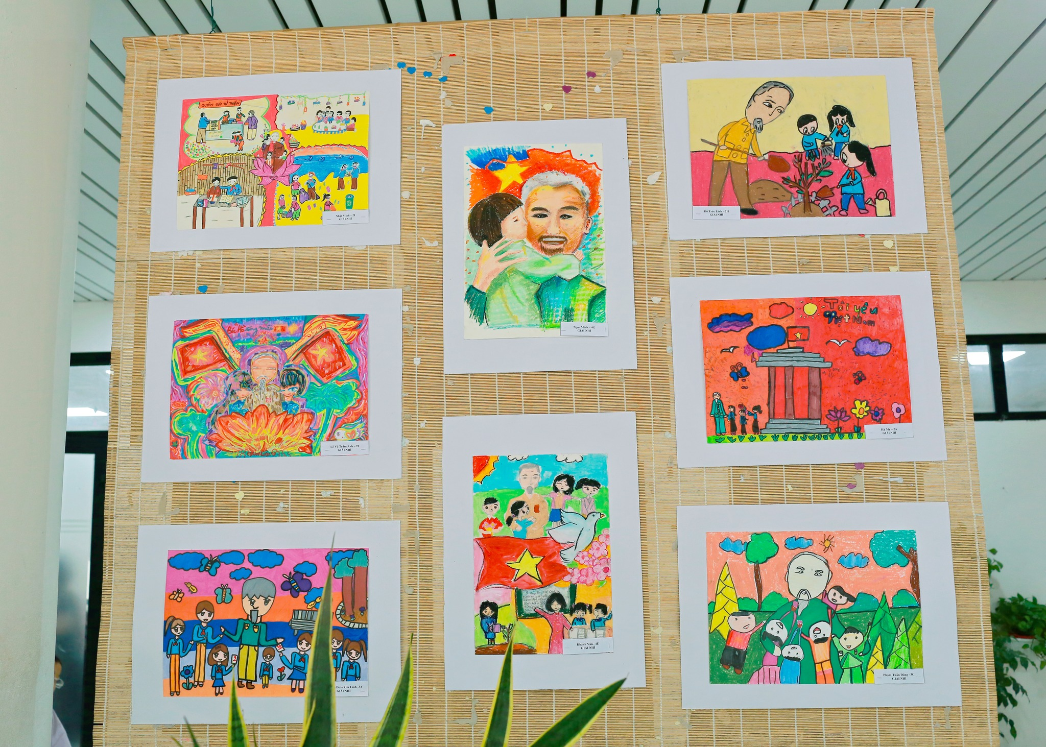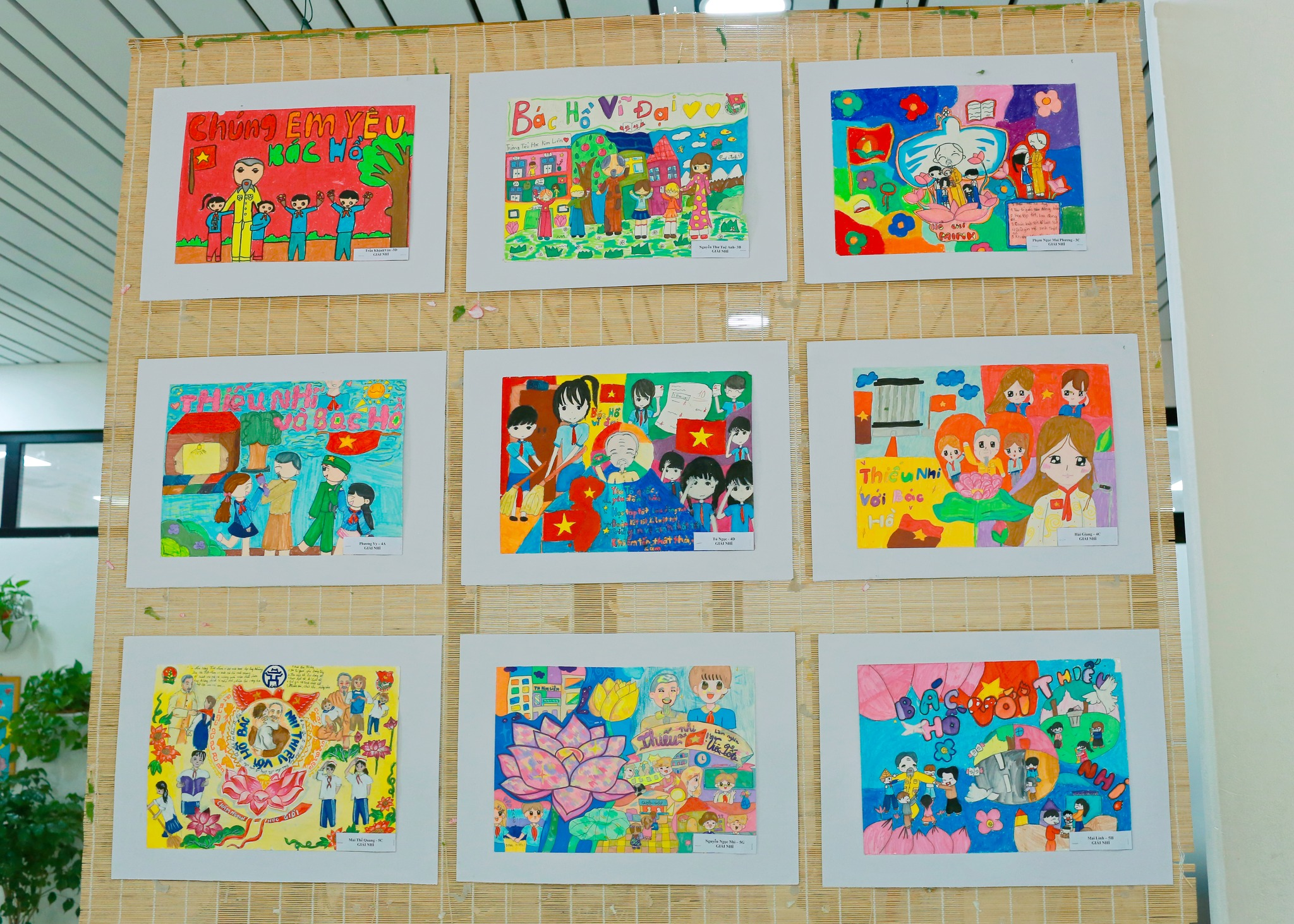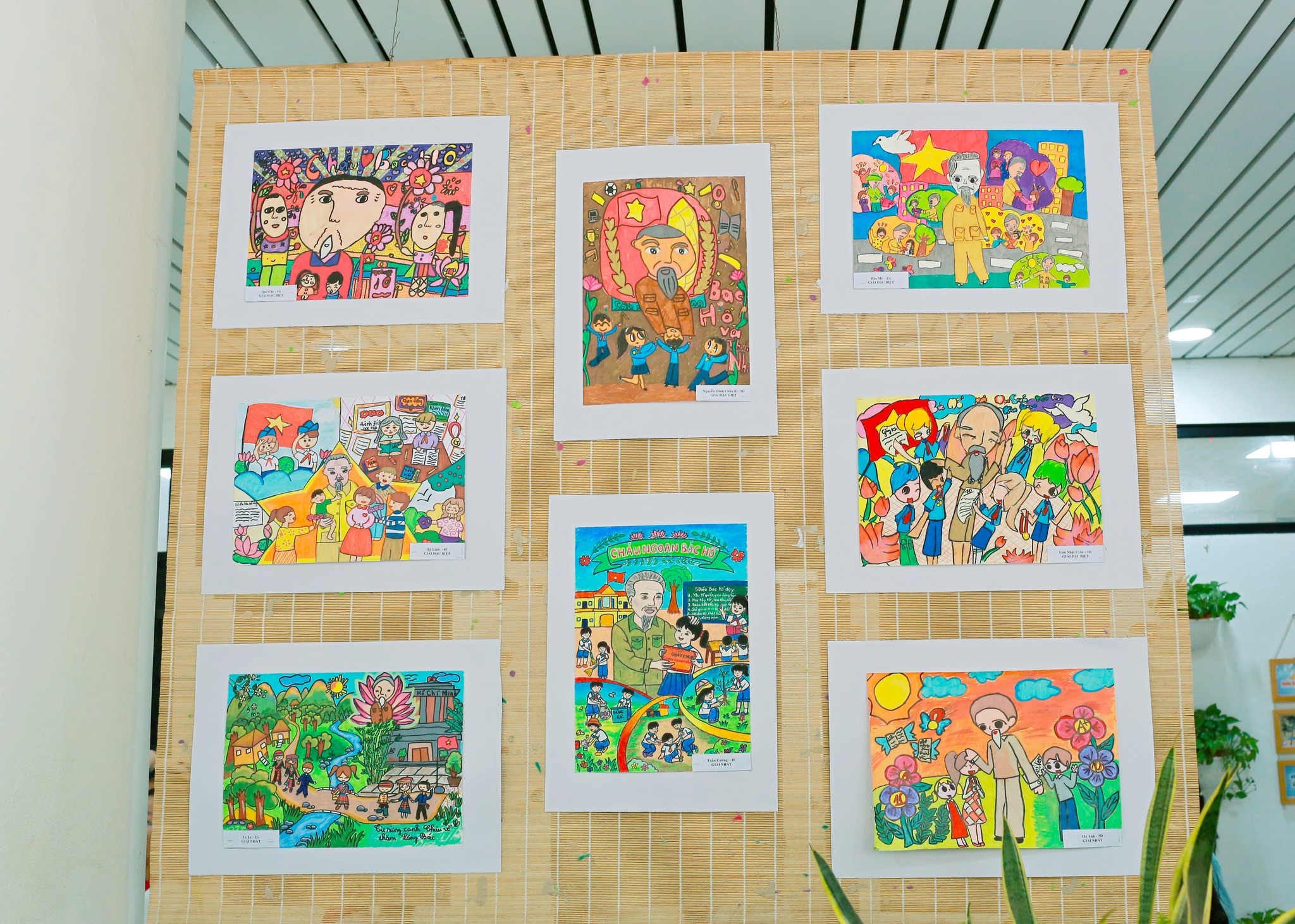 Những nét vẽ hồn nhiên, trong trẻo đã tái hiện hình ảnh Bác Hồ kính yêu – gần gũi, ấm áp và đầy yêu thương. Mỗi bức tranh là một câu chuyện nhỏ, chứa đựng tình cảm sâu sắc mà các em học sinh gửi tới Người.