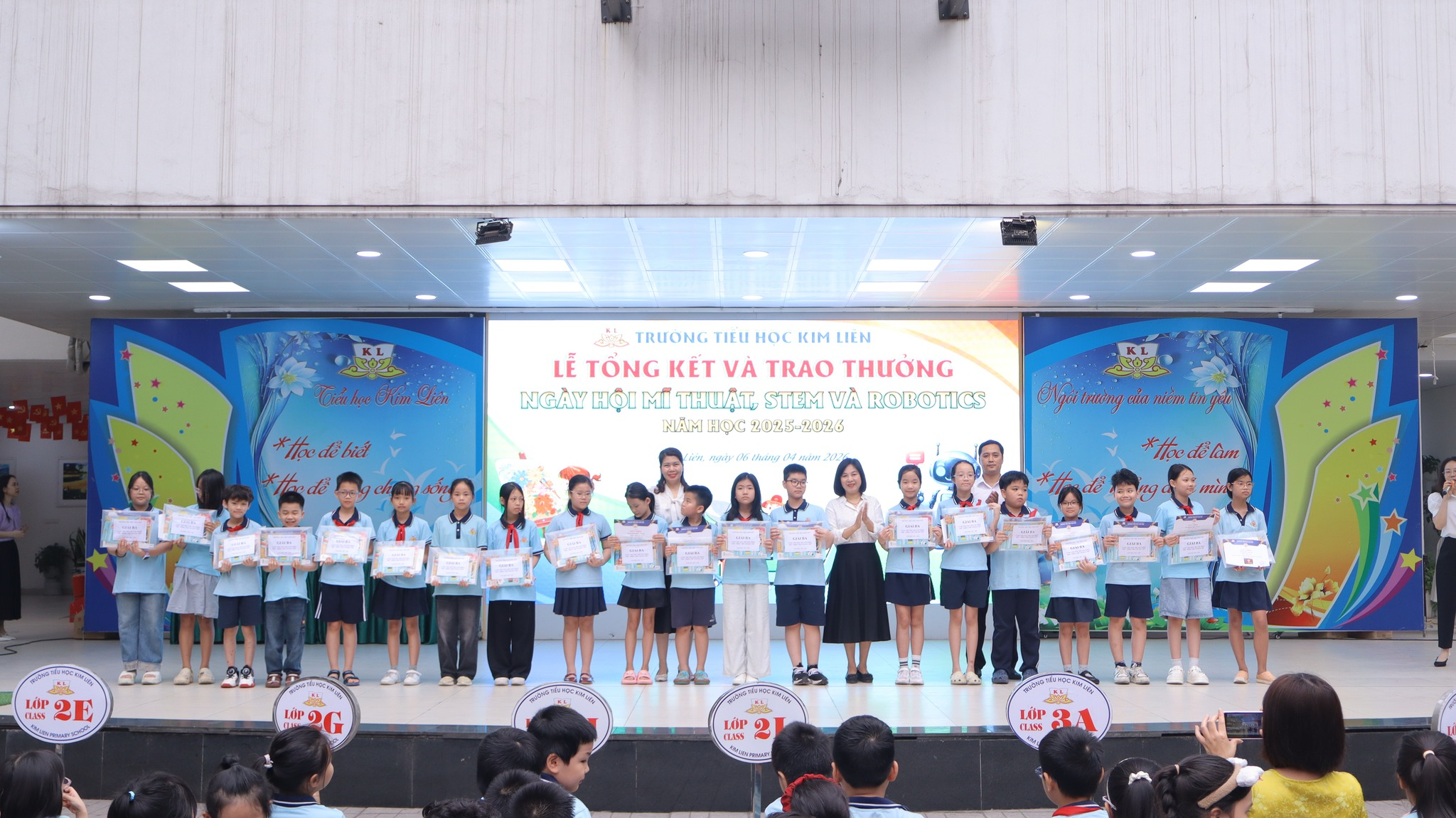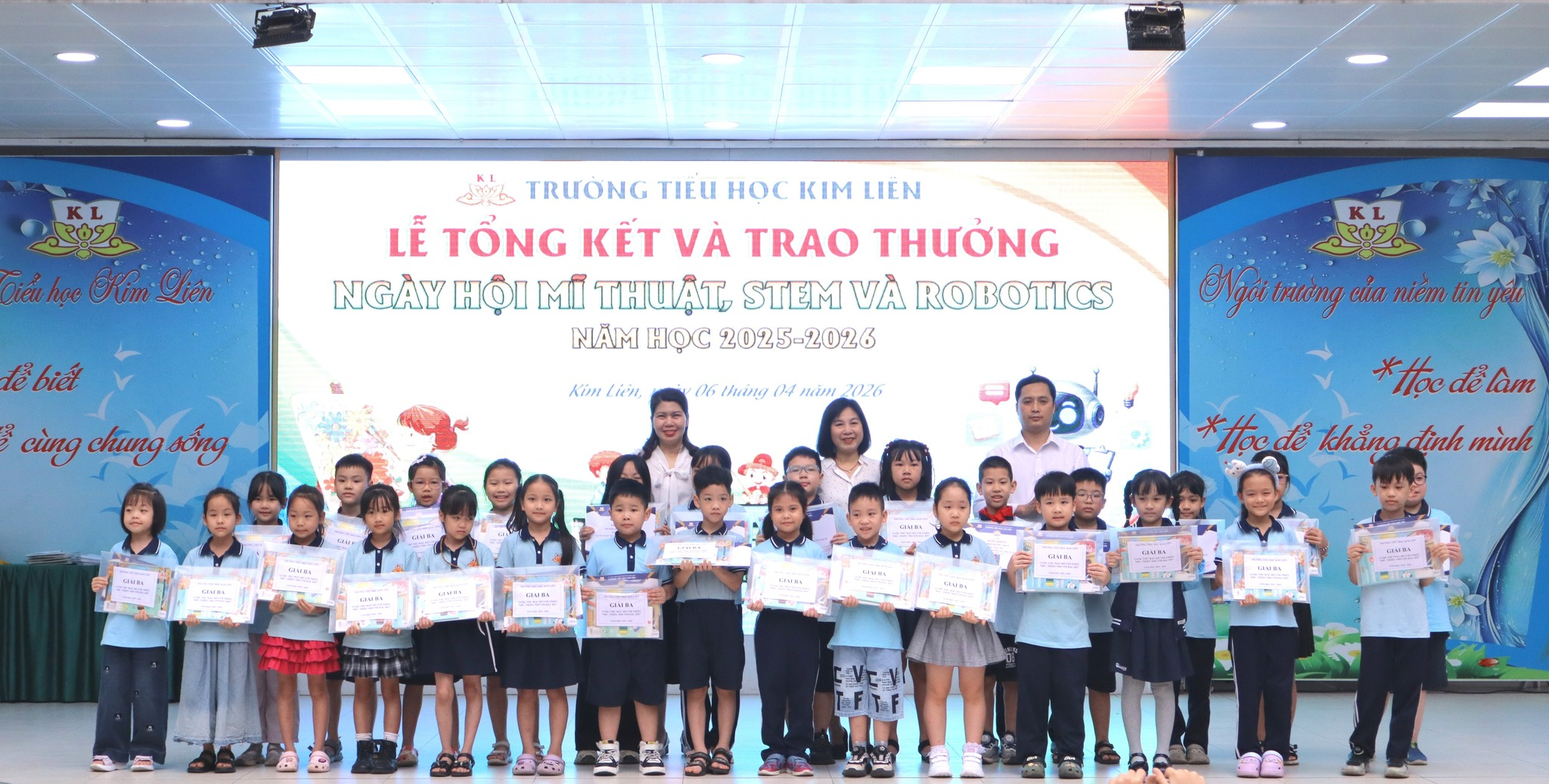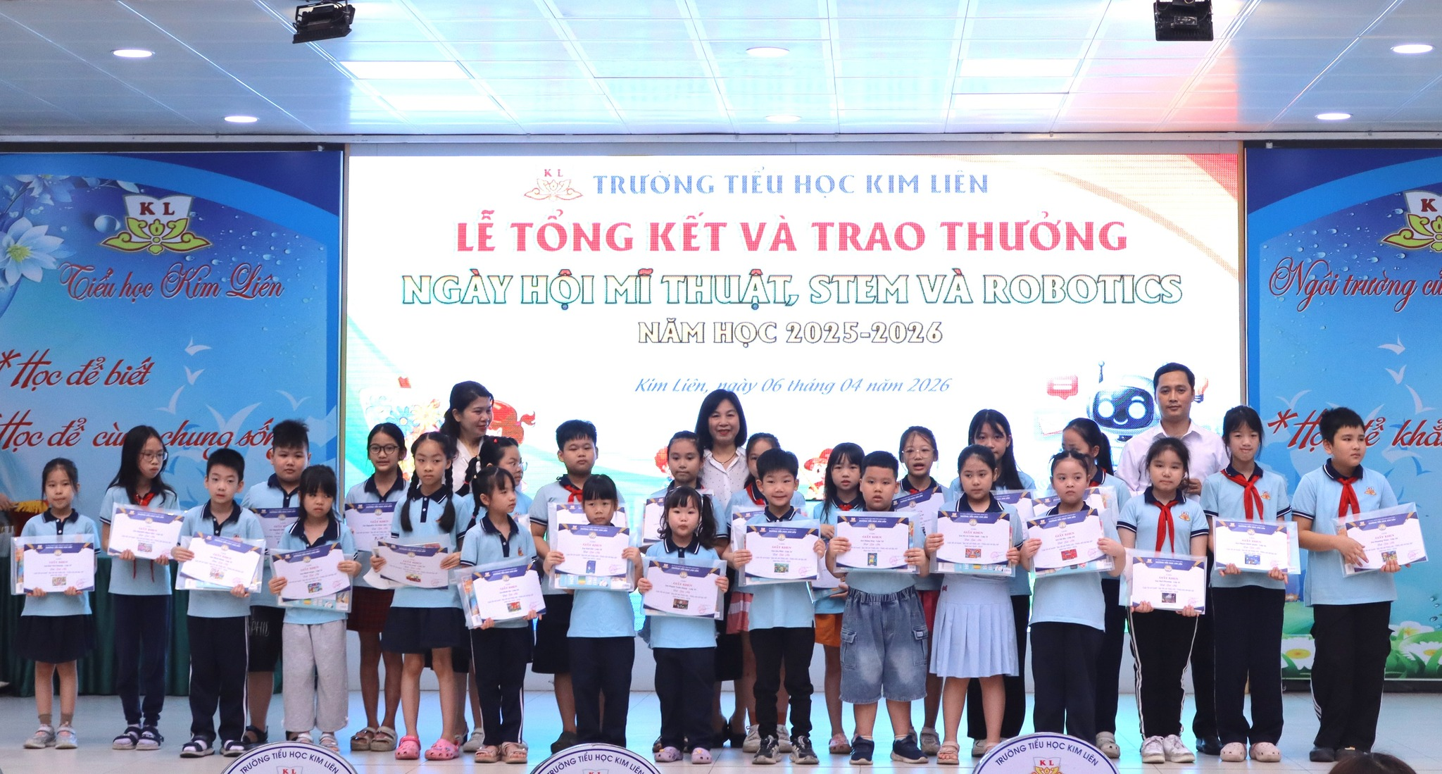 Sáng 06/4/2026, Trường Tiểu học Kim Liên từng bừng tổ chức lễ tổng kết và trao thưởng cho các tập thể, cá nhân có thành tích trong Ngày hội mỹ thuật, Stem và Robotics năm học 2025-2026.
